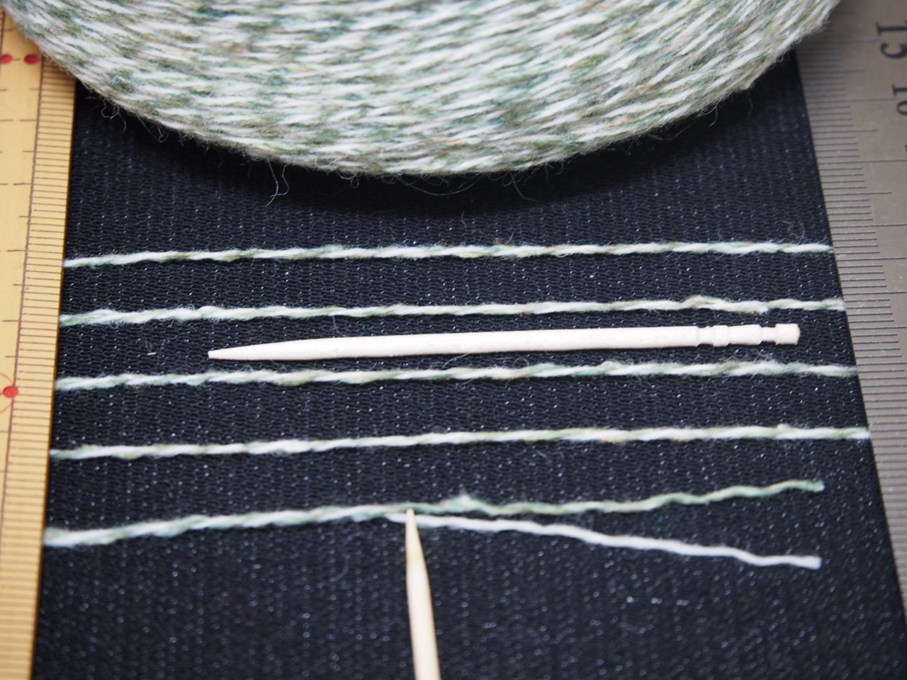 白のウールと毛混グリンの双糸です